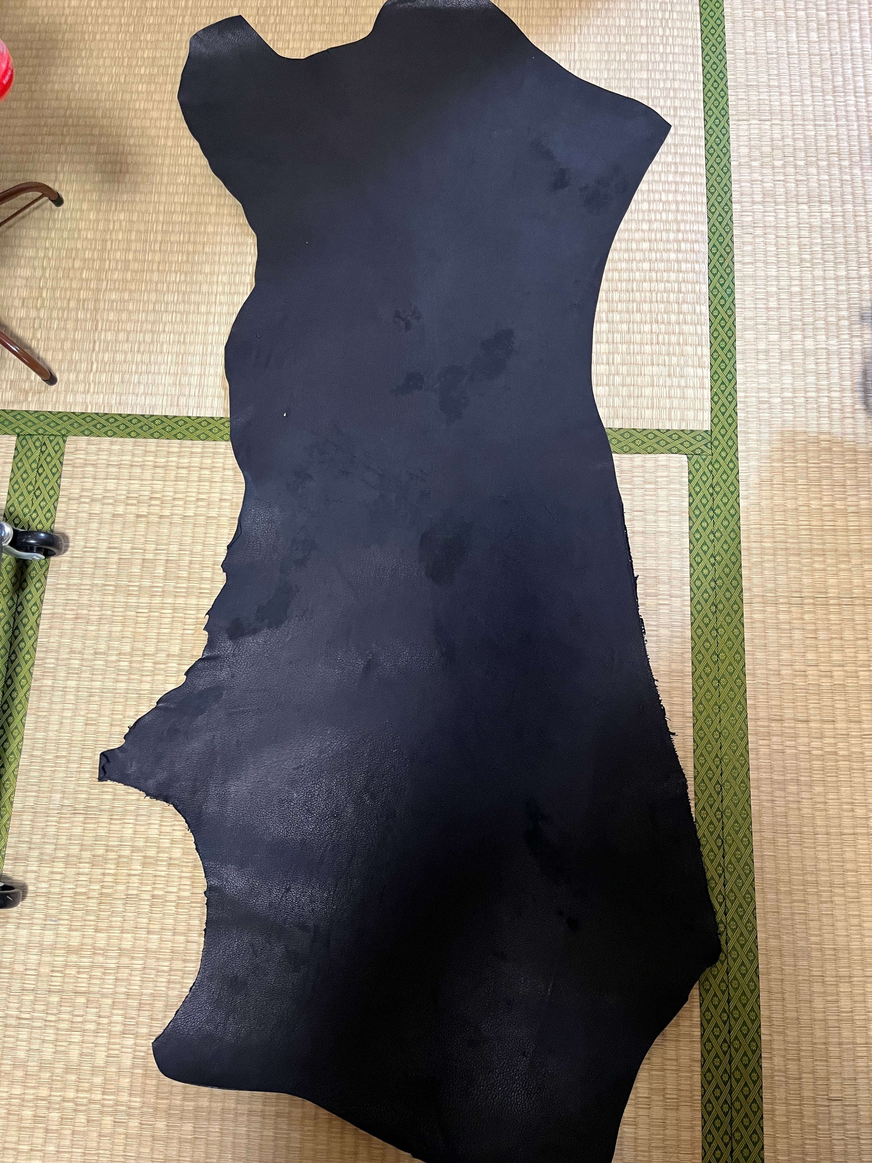 革屋国産ジビエレザー専門ブランド VARIEDさんより購入させて頂いた熊革(ツキノワグマ)ブラックカラーの熊革、A4サイズのカットです。