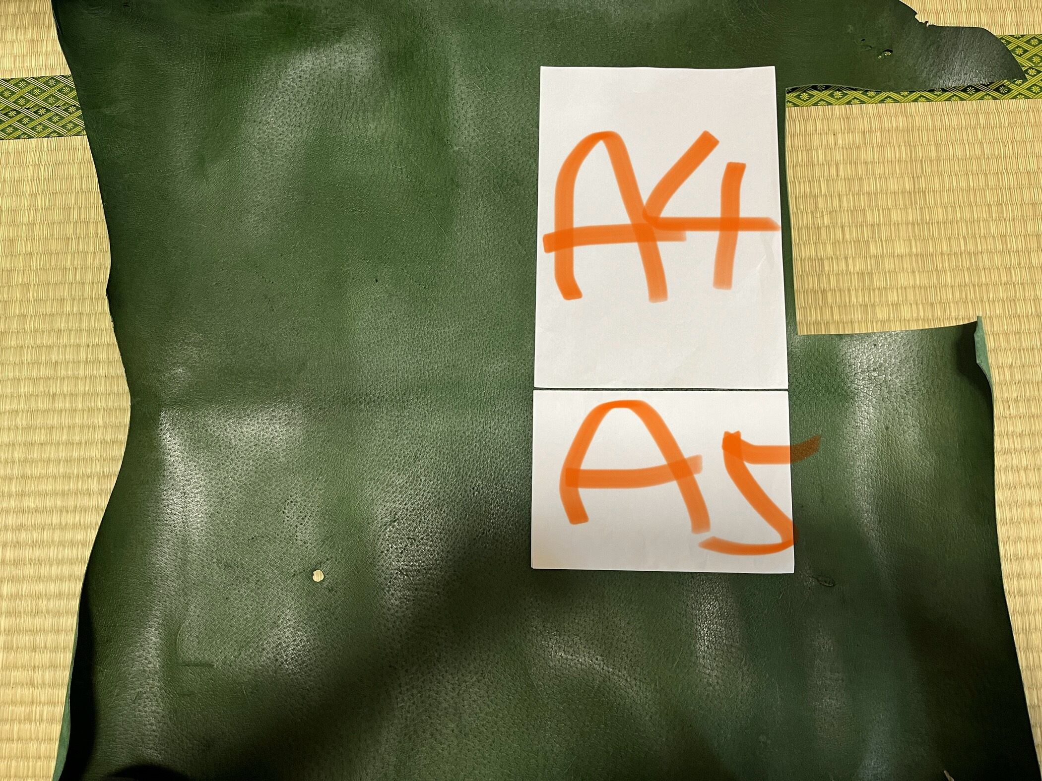 猪革グリーンカラー カットレザー A5サイズ