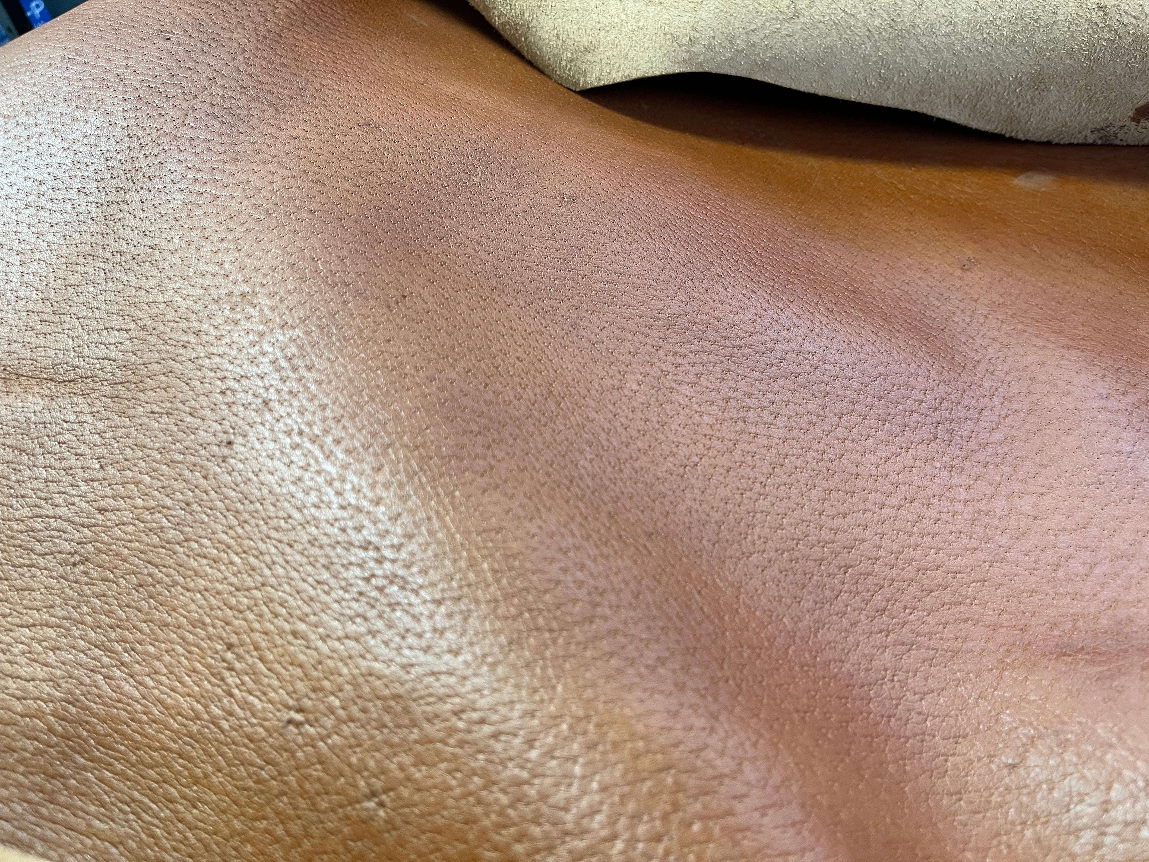 注文が届き次第カットしますが背中側からカットするので比較的きれいな革になります。